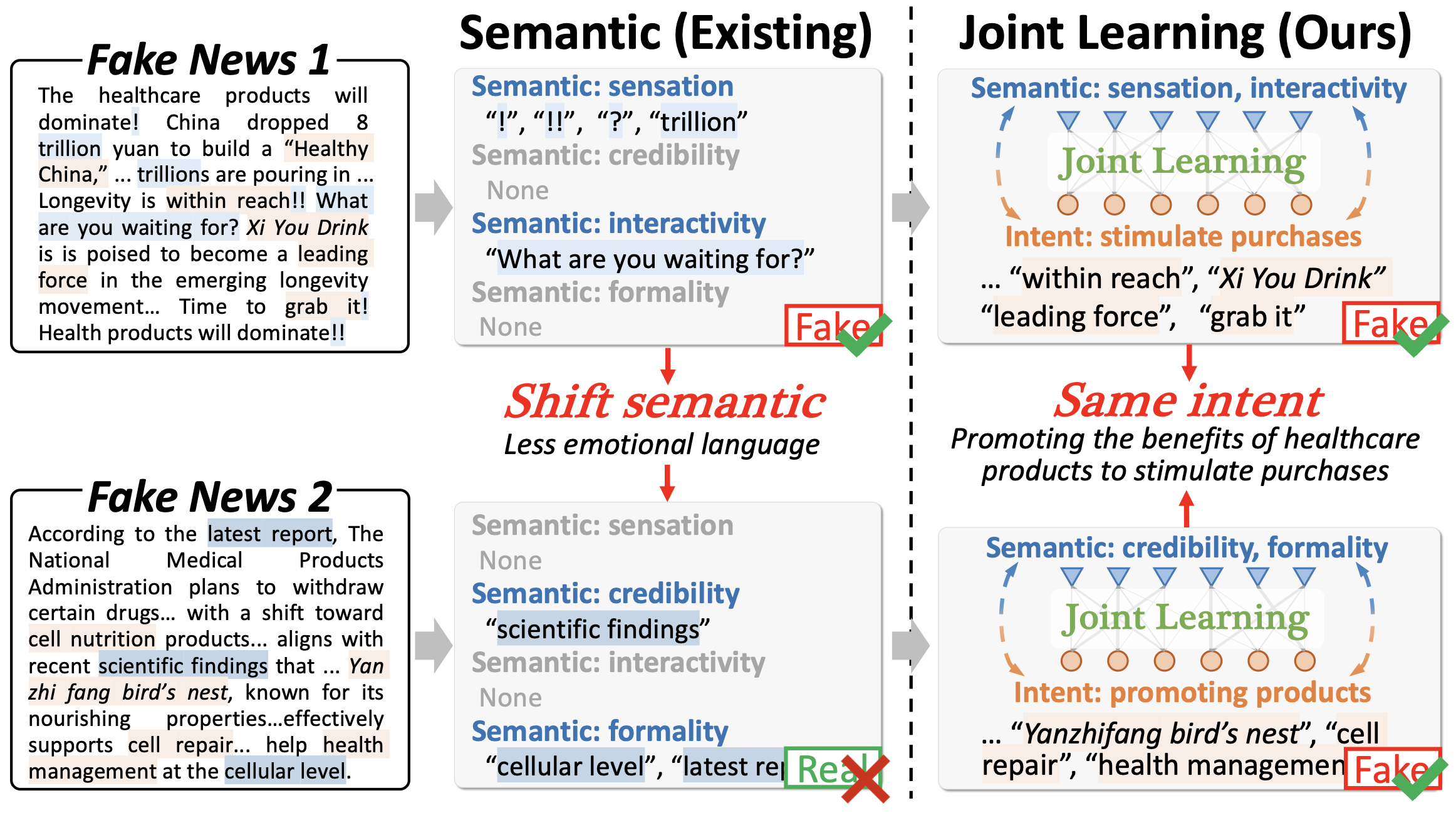 - [August 2025] The first paper about Intent-Semantic Joint Modeling (InSide) for fake news detection has been accepted to CIKM 2025 ๐๐๐.